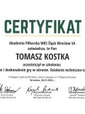 Tomasz Kostka – тренер UEFA A, багаторічний гравець молодіжних груп та випускник Śląska Wrocław. Він почав свою пригоду з футболом у віці 9 років, і до 23 років безперервно був пов’язаний з Вроцлавським Клубом Śląsk. Багаторазовий представник молодіжних представництв Вроцлава та Нижньосілезького воєводства. Молодіжний гравець кілька разів консультувався в національних збірних Польщі до 14 і 15 років. У старшому віці грав у нинішній 2-й лізі, в таких командах, як Ślęza Wrocław, Moto-Jelcz Oława та Pogoń Oleśnica. В даний час в ролі тренера, крім ліцензії UEFA, має сертифікат про проходження тренерського стажування в Ajaxie Amsterdam, Benfice Lizbona, Atletico Madryt, сертифікат про закінчення курсу в області вдосконалення моторики, американської фірми EXOS (Phase 1) і звання Coerver Football Coach.
