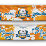 Strój piłkarski Prestige Football Academy. W komplecie są spodenki, koszulka oraz getry z logo Akademii. Strój piłkarski jest podstawowym elementem wizerunkowym zawodników zarówno podczas treningów, jak i zawodów sportowych.