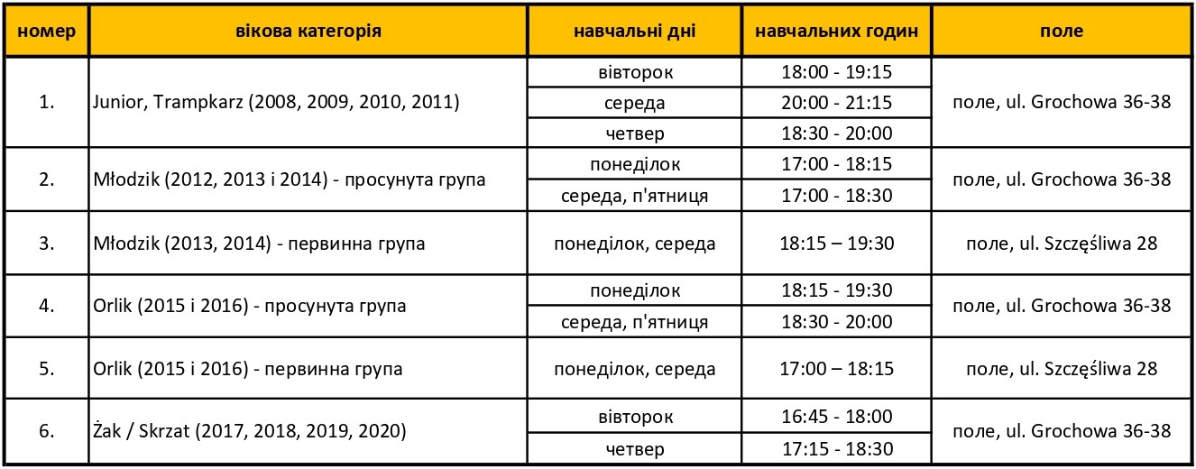 Розклад та місця тренувань дивіться з 01.04.2026!